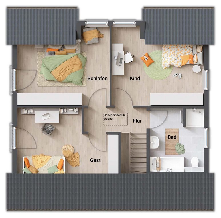 ab Preis1 €Abbildungen enthalten Sonderwünsche die nicht Vertragsbestandteil sind, regionale Preis- und Ausstattungsänderungen möglich. Schlüsselfertig im Sinne dieses Angebotes bedeutet: ohne Tapezier- und Teppichverlegearbeiten.