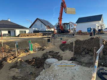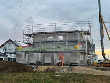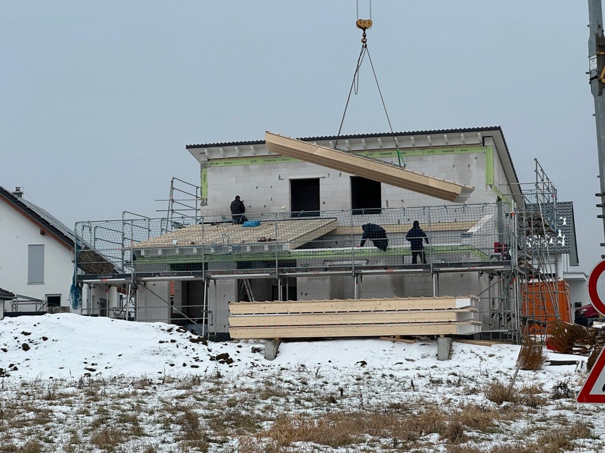 In Ehingen bauen wir ein frei geplantes Haus. Mittlerweile ist das Dach gedeckt und es wird kräftig auch innen gebaut. Wir freuen uns schon heute auf die Übergabe dieses schönen Hauses und bedanken uns für das in uns gesetzte Vertrauen!