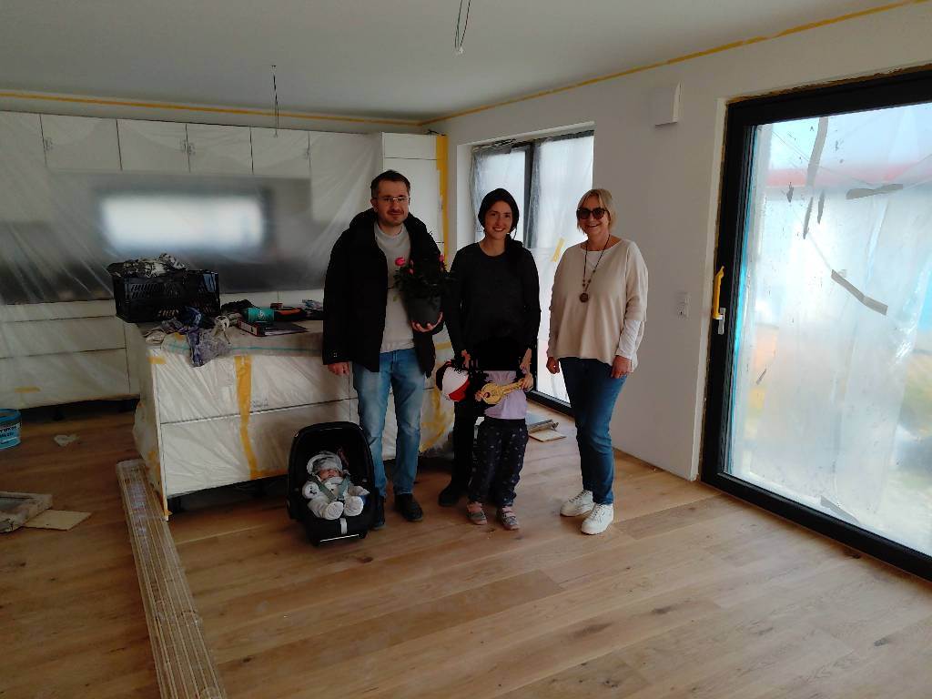 Familie mit Kind bei Hausübergabe